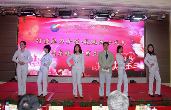 隨后的活動更是讓大家享受了一次視覺大餐。一首夜上海掩飾不了舞者的美麗,她們用婀娜多姿的舞步詮釋了女性魅力;工衣秀更是展現(xiàn)酒店員工內在氣質的美;動感的禮儀操更是把酒店服務禮儀及員工對工作的激情展現(xiàn)淋漓盡致。精彩的節(jié)目迎來了現(xiàn)場觀眾熱烈的掌聲。
