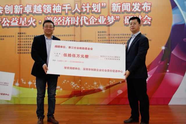 研討會(huì)現(xiàn)場,“社會(huì)創(chuàng)新卓越領(lǐng)袖千人培育計(jì)劃”子項(xiàng)目之“公益星火二期———企業(yè)家戰(zhàn)略慈善計(jì)劃”獲得多家全國知名企業(yè)和基金會(huì)共計(jì)175萬元捐贈(zèng)。其中,香江社會(huì)救助基金會(huì)捐贈(zèng)55萬元設(shè)立“公益星火媒體人專項(xiàng)獎(jiǎng)學(xué)金”,用于獎(jiǎng)勵(lì)與培育10位助推新型慈善公益事業(yè)策劃與傳播的高級(jí)媒體人。