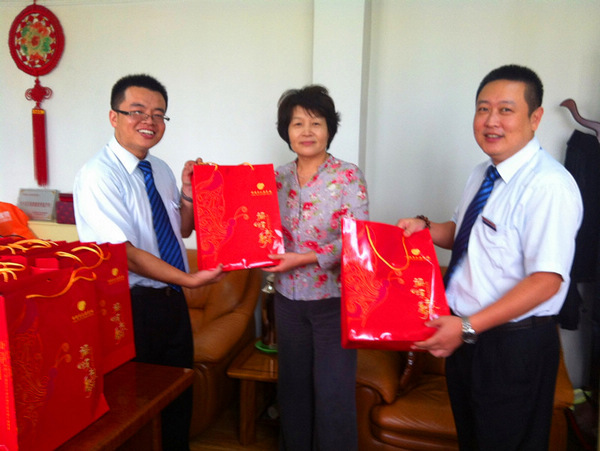 月到中秋分外明,人到佳節(jié)別樣親。在一年一度的中秋佳節(jié)來(lái)臨之際,為了給員工營(yíng)造一個(gè)溫馨、喜慶、祥和的節(jié)日氣氛,讓員工深刻感受“香江集團(tuán)”大家庭的人文關(guān)懷,香江商業(yè)集團(tuán)天津地區(qū)特組織了高管中秋慰問(wèn)活動(dòng)。9月24日,華北區(qū)域副總經(jīng)理鄭春雪親自帶隊(duì),組成中秋慰問(wèn)組,分別前往天津三個(gè)門(mén)店進(jìn)行親切慰問(wèn),向一線員工們致以節(jié)日的問(wèn)候,并送去了香江月餅等慰問(wèn)品。
