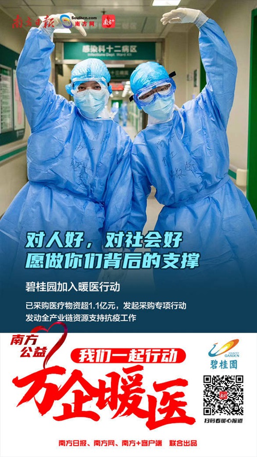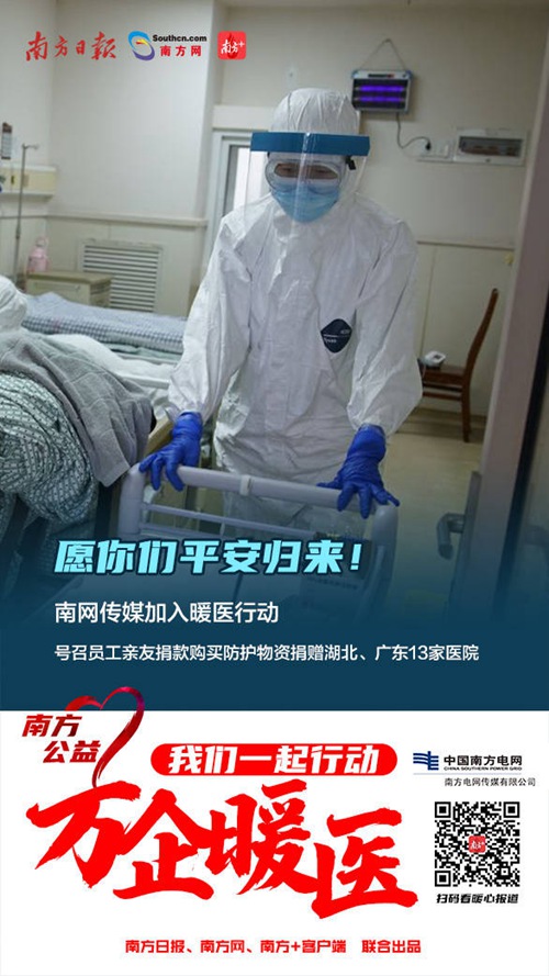 3月3日,南方日?qǐng)?bào)、南方網(wǎng)、南方+客戶端正式啟動(dòng)“萬(wàn)企暖醫(yī)——我們一起行動(dòng)”公益活動(dòng),旨在聯(lián)合社會(huì)力量用實(shí)際行動(dòng)為奮戰(zhàn)抗疫一線醫(yī)務(wù)人員及家屬解難事、幫家事。同時(shí)發(fā)揮媒體平臺(tái)連接、傳播價(jià)值,匯聚社會(huì)力量為打贏疫情防控戰(zhàn)役貢獻(xiàn)廣東媒體力量。